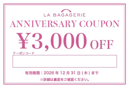 Anniversary campaign期間中にご注文いただいた商品と一緒に、当オンラインショップでの次回のお買い物に使えるAnniversaryクーポンカードをお届け!